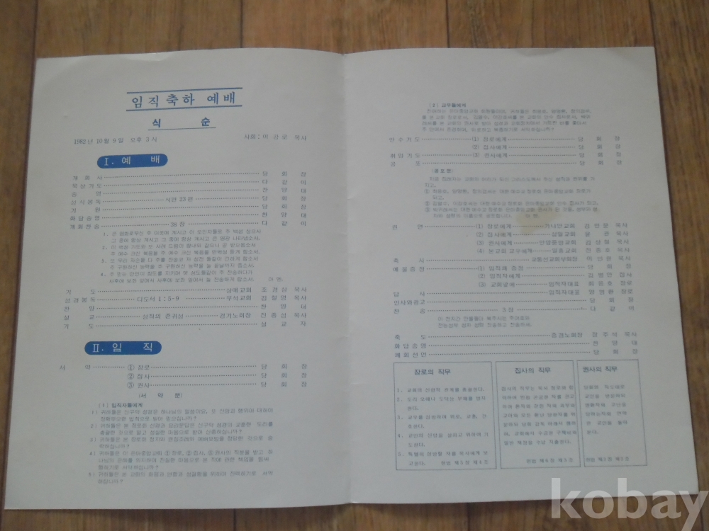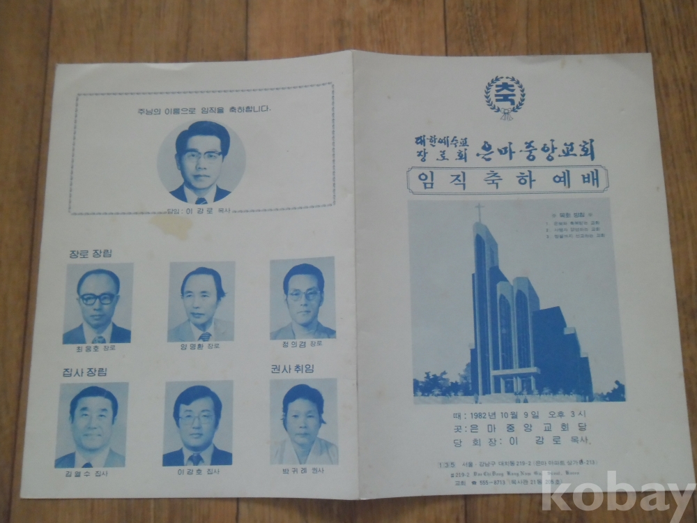 1982년 서울 은마중앙교회 임직축하예배 순서지