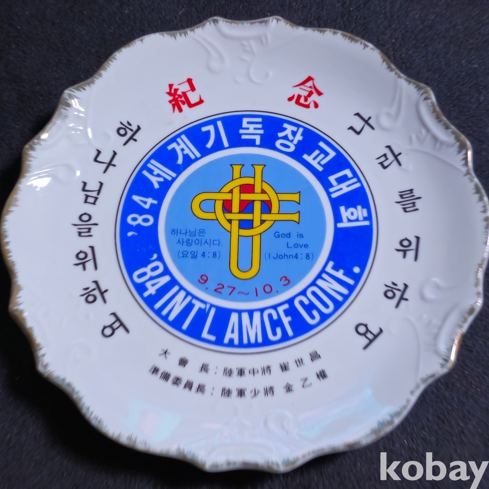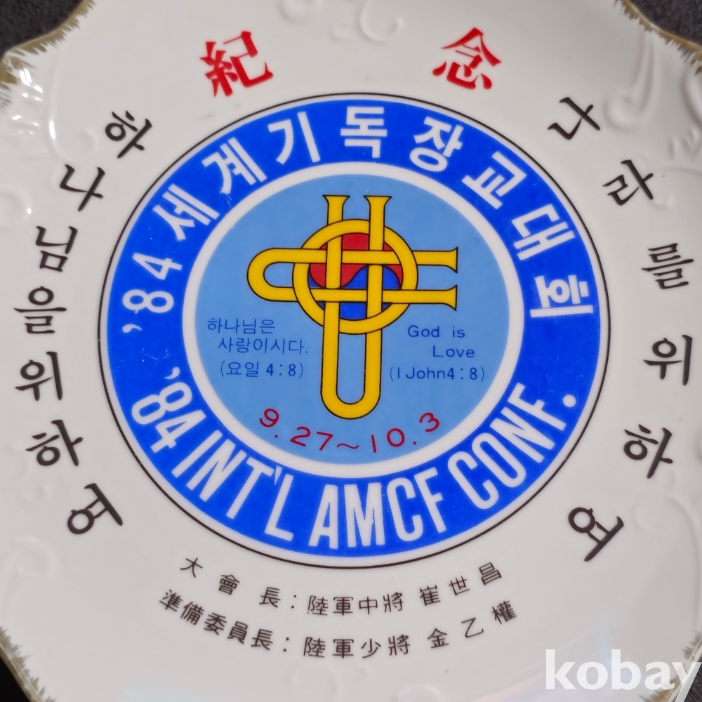 (((군자료/도자기접시))) 하나님을 위하여/나라를 위하여 - '84 세계기독장교대회 기념 도자기접시