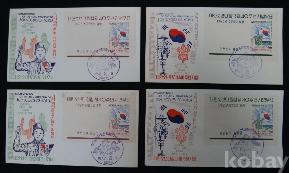 초일봉피(4매) / 대한소년단 창립 제40주년 기념우표/ 실제물품사진 / 251023-2-13