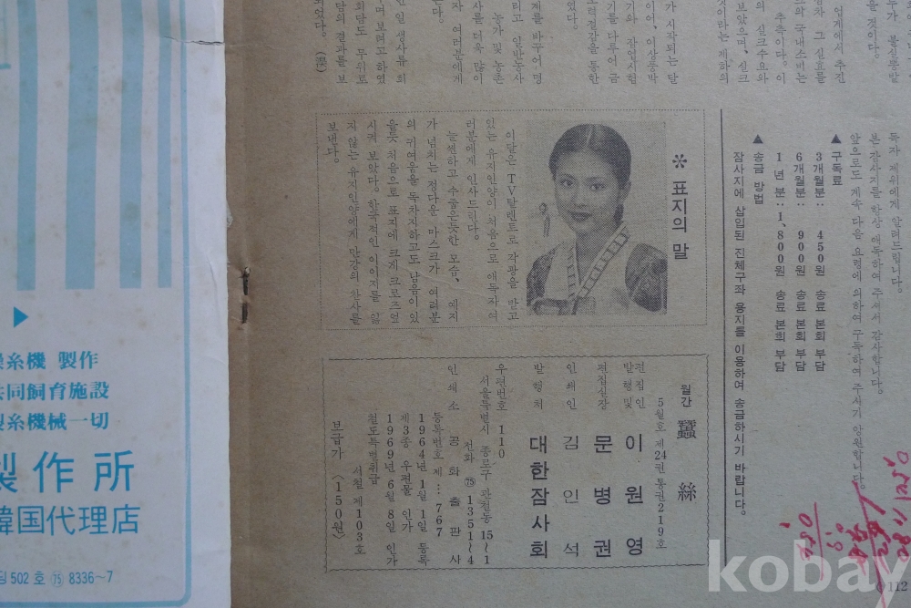 1977년 5월호 잠사 잡지 - 표지모델 영화배우 유지인 -