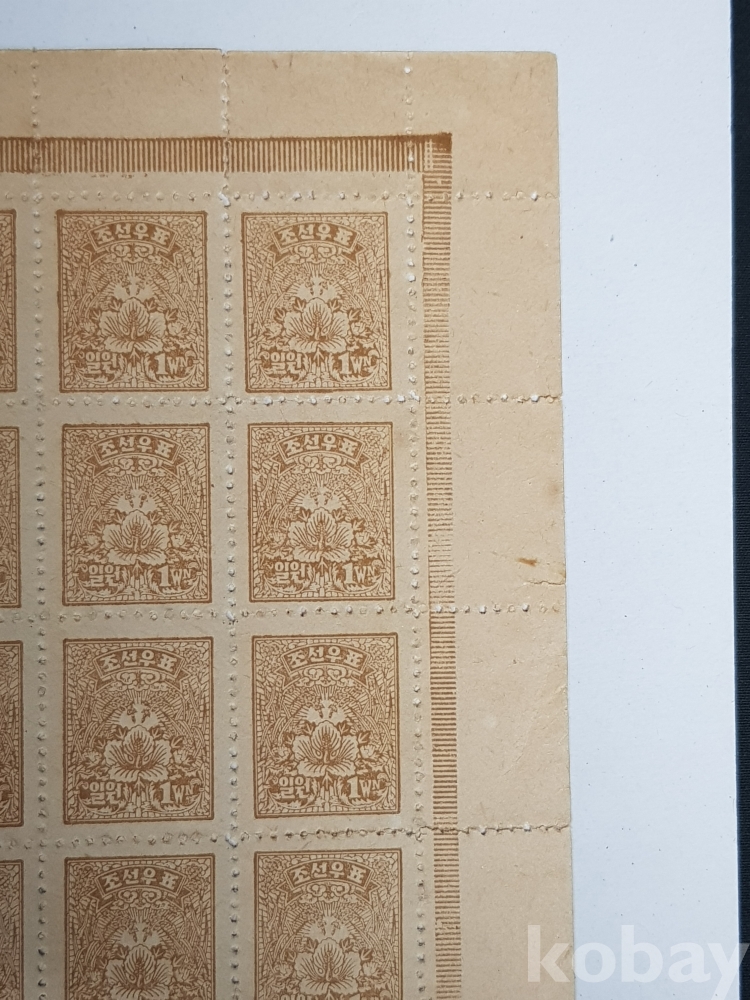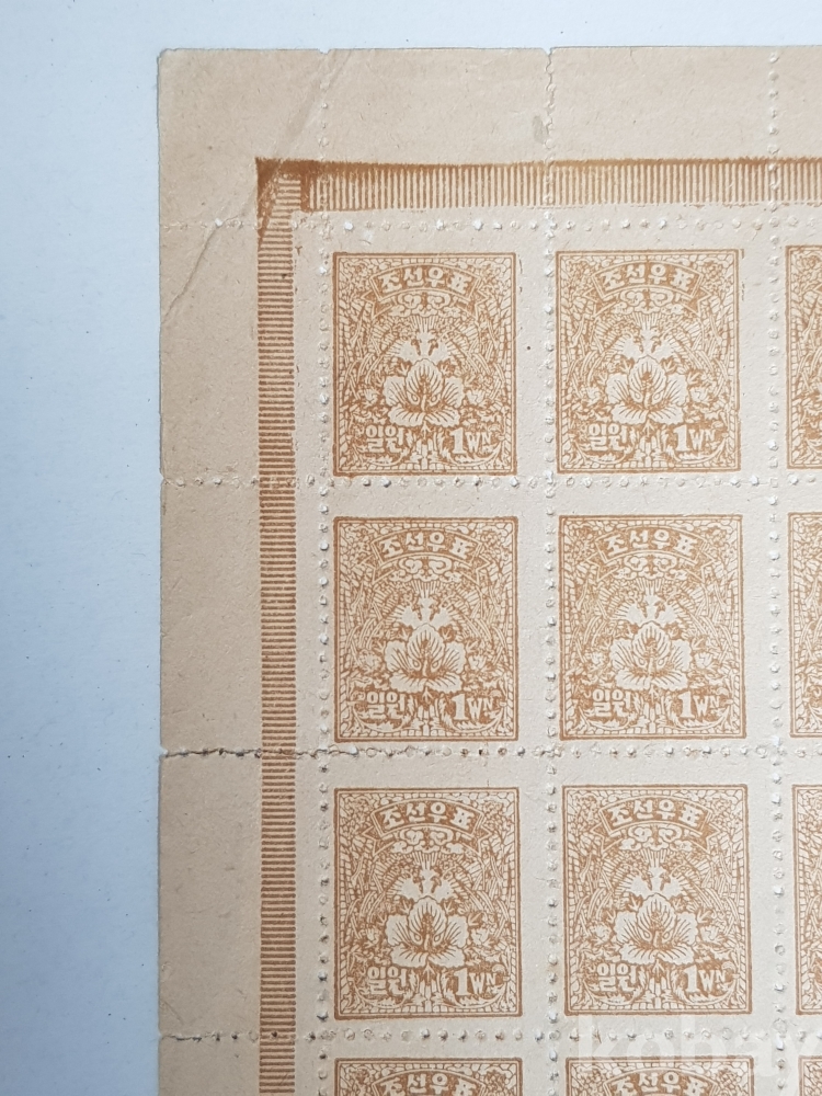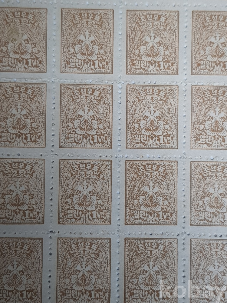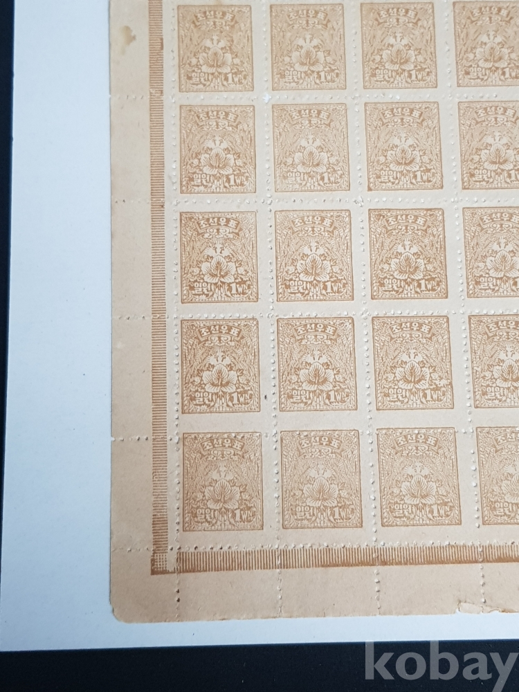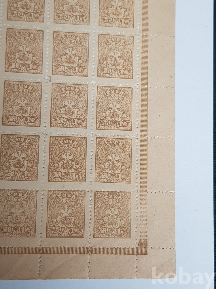 * 1946년 발행의 미군정청 보통우표 1원 무궁화우표 천공 전지 입니다.