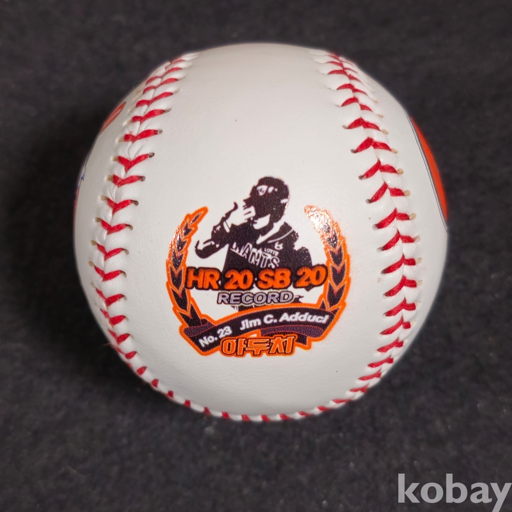 (((프로야구/야구공/싸인볼))) 롯데자이언츠 JIM 아두치 20홈런 20도루 기념구 로고볼 (소형구)