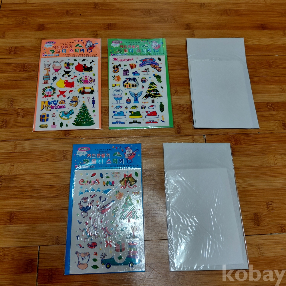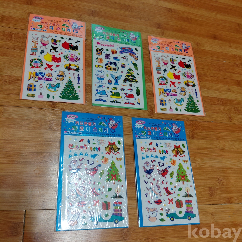 근현대사 80ㅡ90년대 크리스마스 카드 만들기 코디스티커 미개봉 다섯점 일괄 올려드립니다