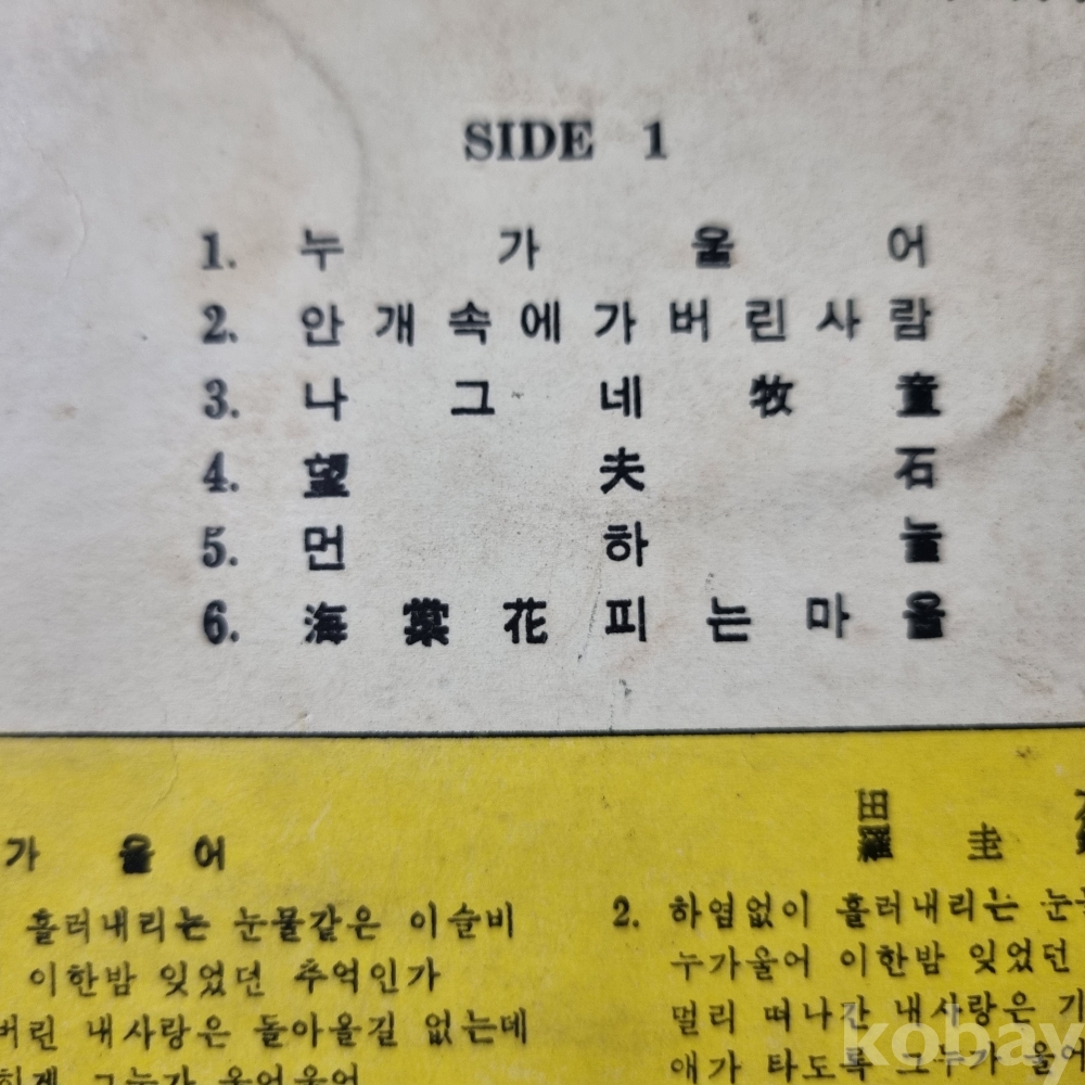 자켓상태 | EX : 약간의 마모, 모서리 찢김 존재 | 음반상태 | VG : 생활 기스 다수, 가벼운 노이즈 존재 | 발매정보 | 초반 | 가사지여부 | 무 |