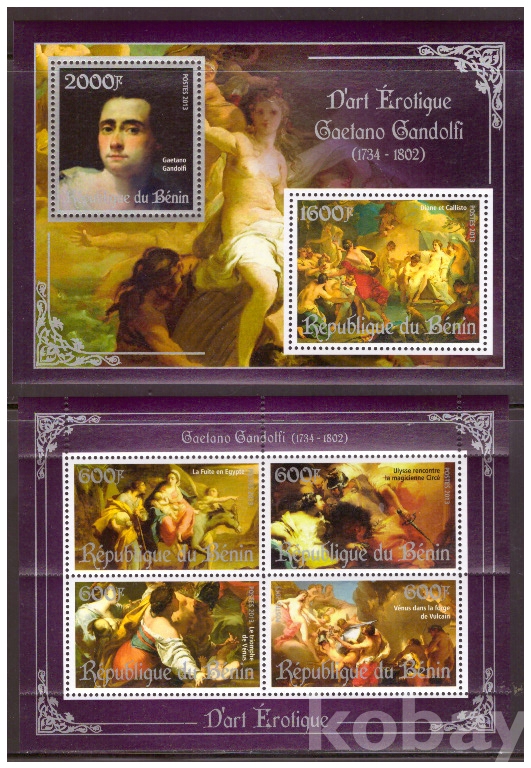 (누드명화) 베냉 2013 가에타노 간돌피 누드화 2 s/s(silver) MNH