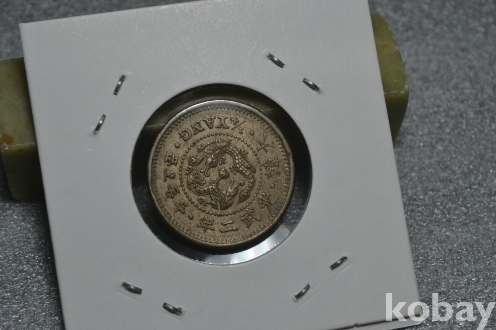 앞면 잎사귀 도안도 굉장히 정교하고, 뒷쪽면 용의 몸통을 보시면 통통한 용으로 보기드물고 귀중한 " 관주전(官鑄錢)(?) " 두돈오푼으로 보입니다.