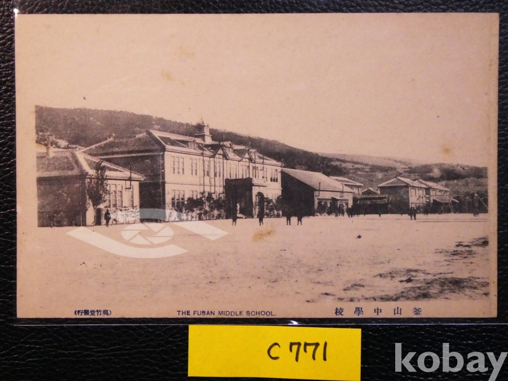 ▣근대한국엽서(진본): 부산엽서. 부산중학교 학교 건물과 운동장 전경, 매우 희귀/1매.