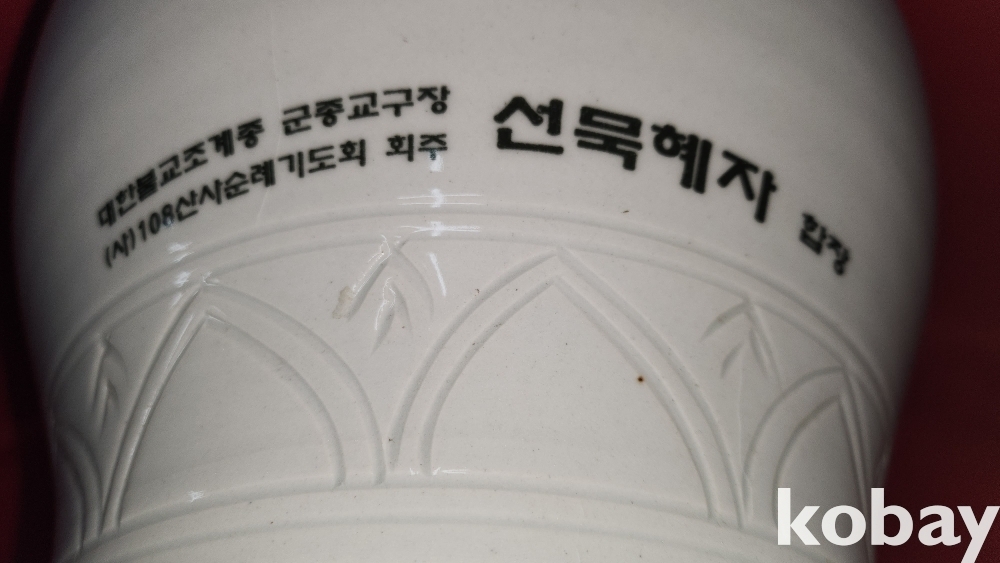 청원도예 문자문양 백자 달항아리입니다,