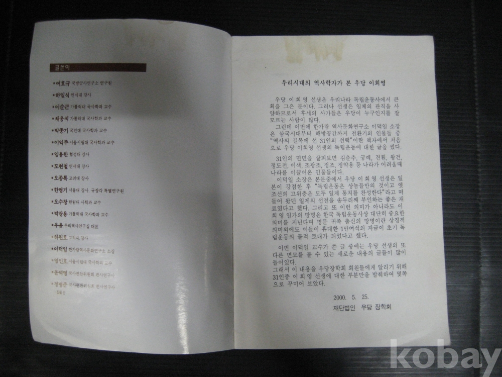 우당 이회영 ,,,팜플렛,,,,2000년,,