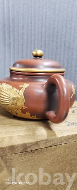 p-77.오동나무박스에든 중국1일자고경주의 금채 공작문문자 사찻주전자(미감정)