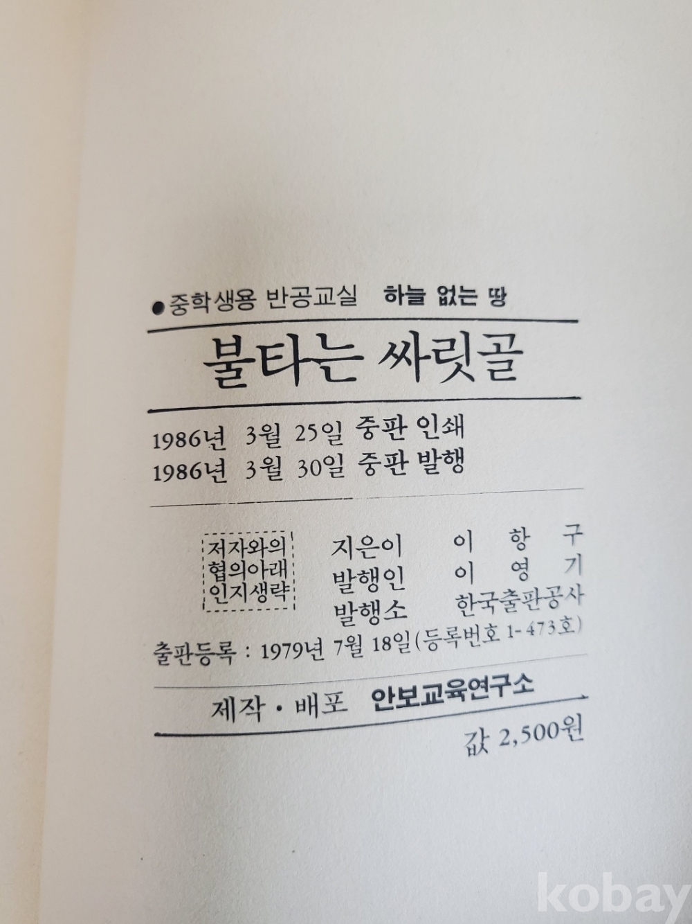 1. 불타는 싸릿골, 이항구 지음, 김희준 그림, 한국출판공사, 1986년, 240쪽, 상태 상, 사진 참조