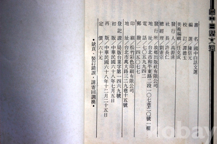 (중국서적) 國中白話文選 (국중백화문선) - 1979년. 중국 발행 ...