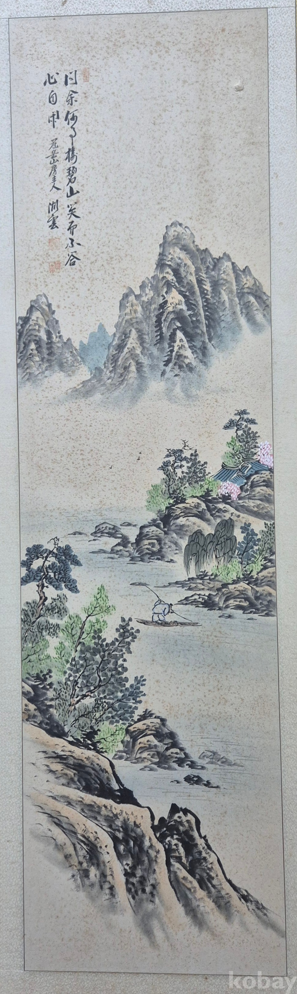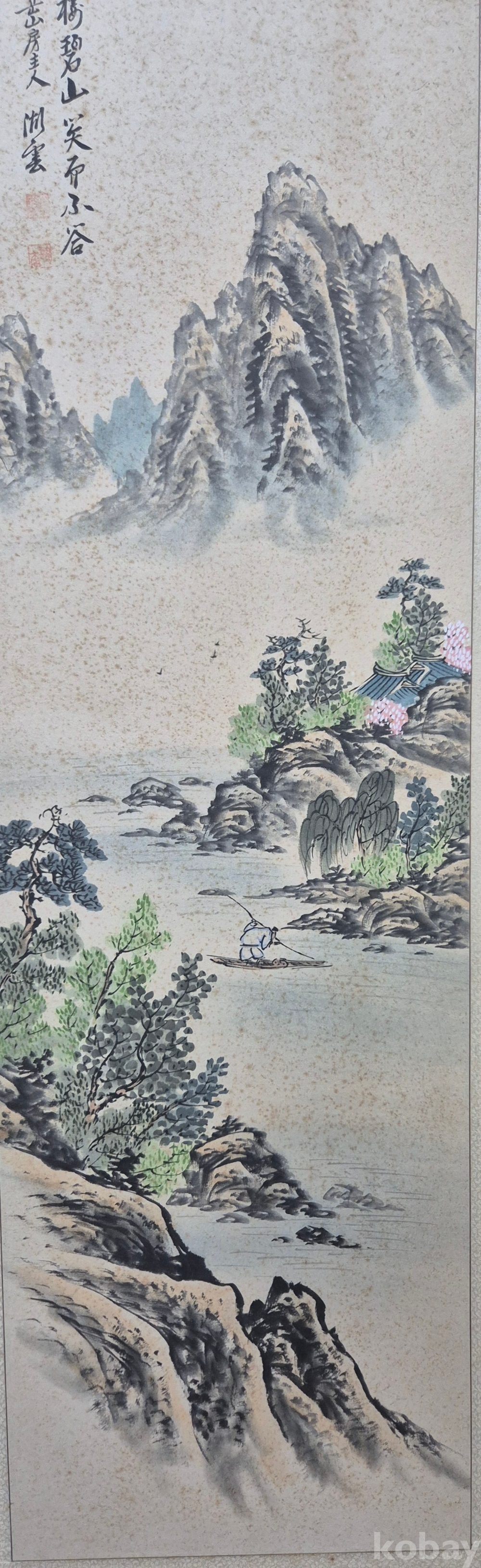 시원스럽게 잘 그려진 춘경 산수화'이오니 작품 이미지상 수결 및 낙관'등 두루 잘 참조하시고