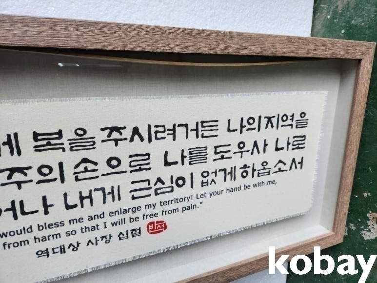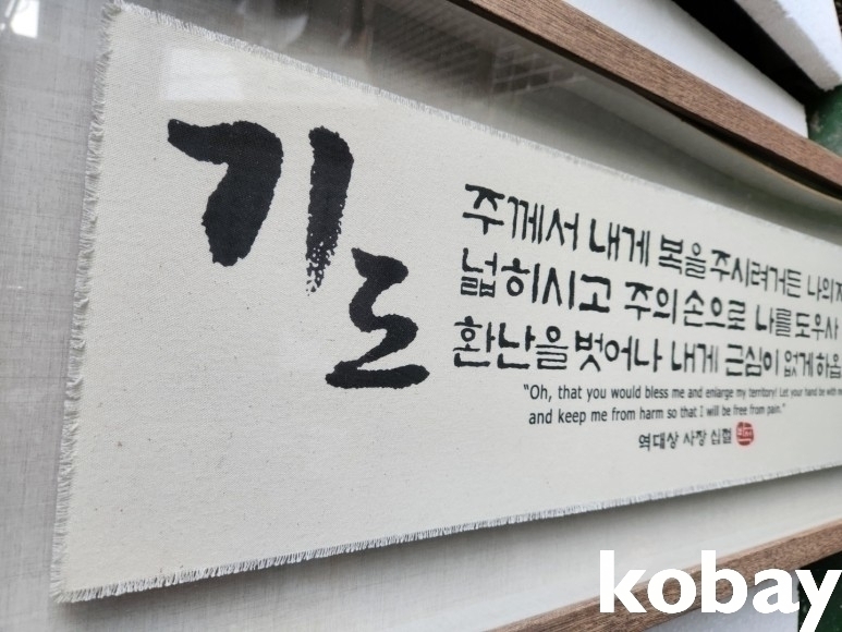 기도...성경 구절이 천에 표현된 액자 입니다.
