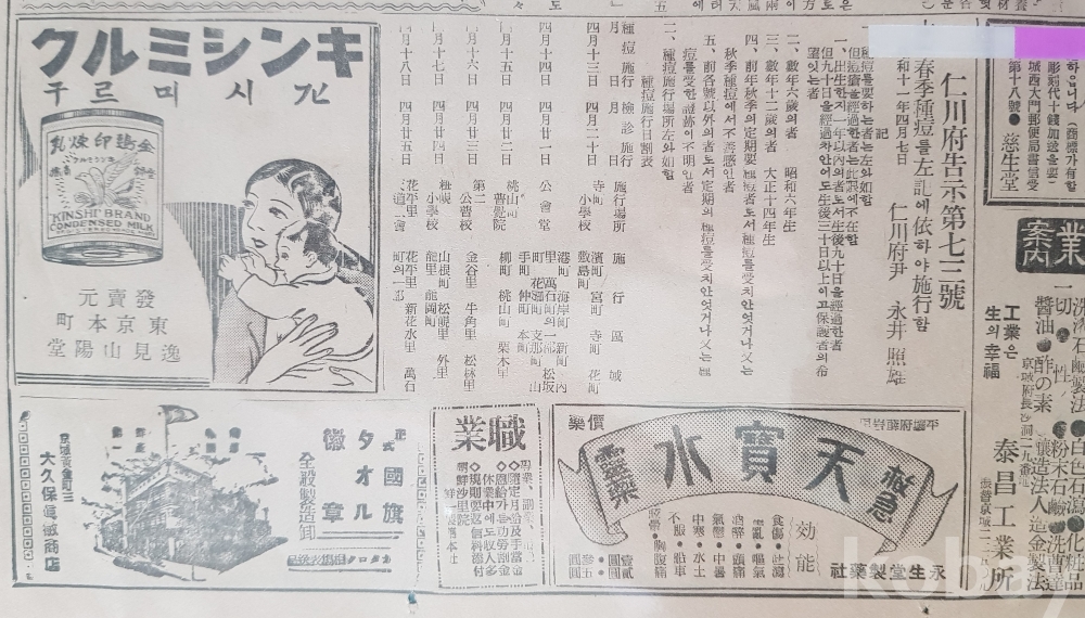 仁川府告示제73호가 실린 1936년 4월 13일 매일신보