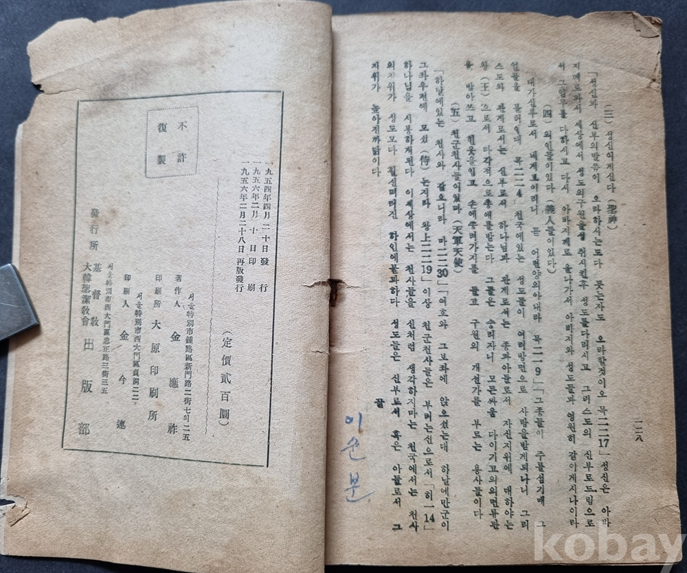 세월의 흔적 (뒤 표지 훼손, 빛바램)