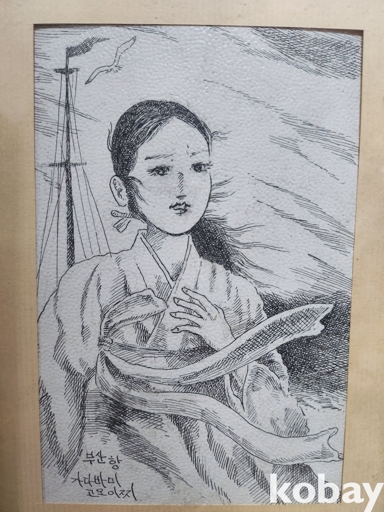 일본 화가 作 부산항 연필화 특수인쇄입니다,