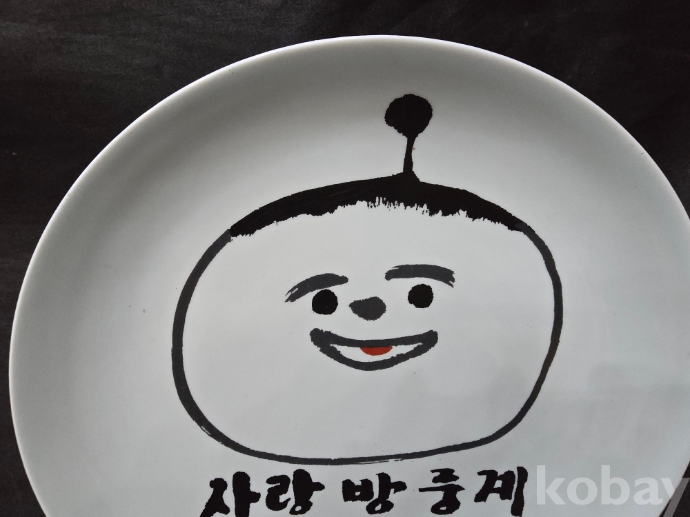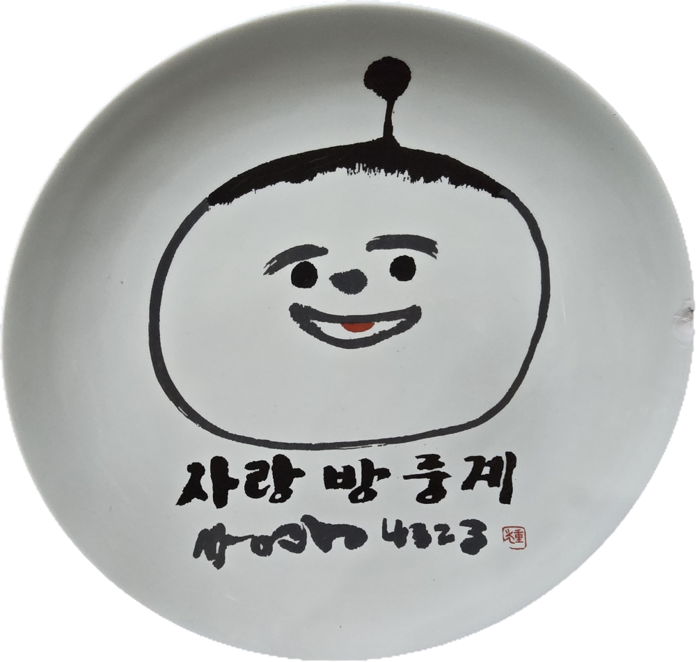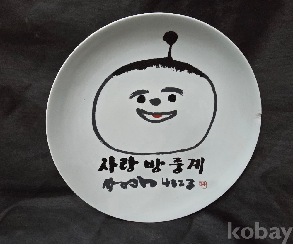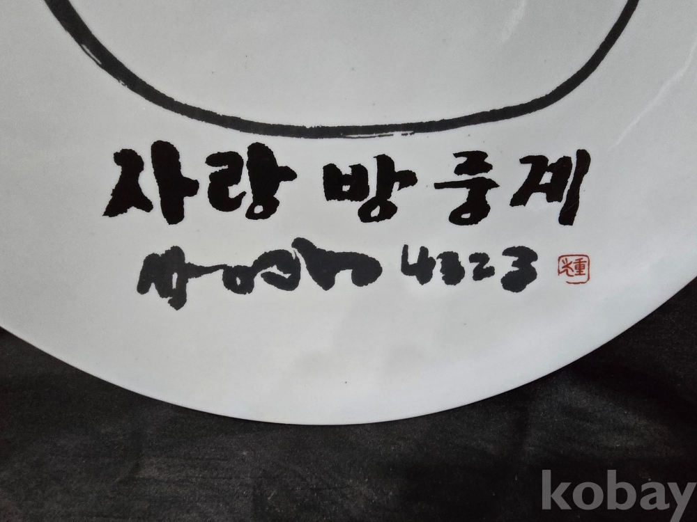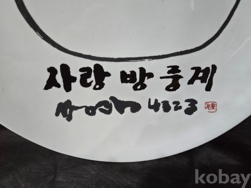 명품도자기/ 백자 원반 -사랑방중계 1990년 작품/ 중광스님 (진품보장)