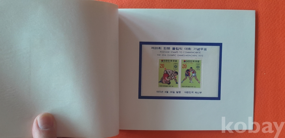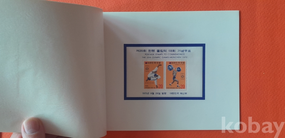 1972년 8월 26일 발행 제20회 올림픽대회 기념 우표첩 입니다.