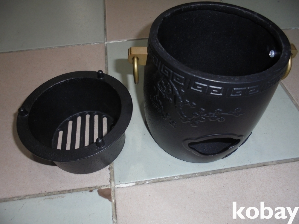 옛날 불씨귀중이 여기던시절 불씨 나르던 이동용화로로 인기품여서 근대에 재현한 무거운무쇠 불씨화로