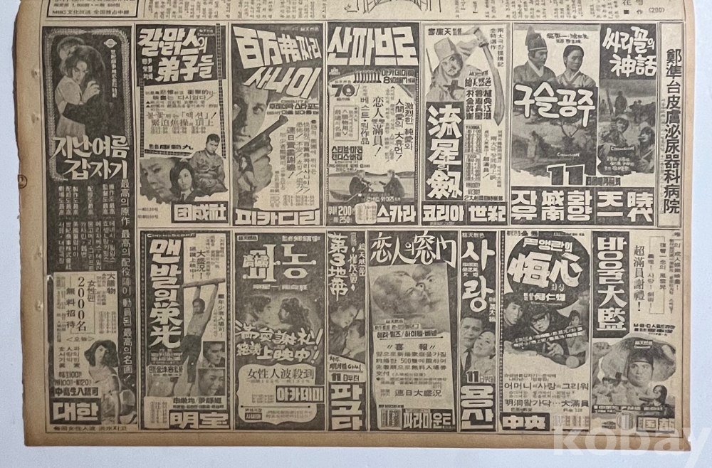 뒷면에 지난여름갑자기, 산파브로, 유성의 검, 구슬공주, 싸리꼴의 신화, 엄앵란의 회심, 방울대감 등 영화 광고 있습니다.
