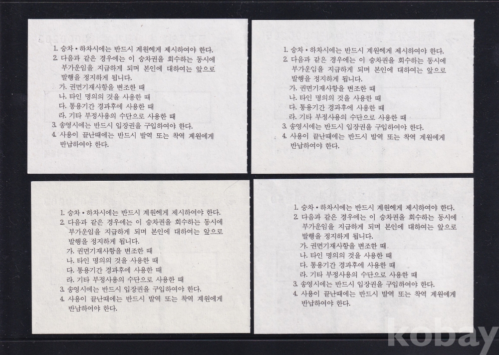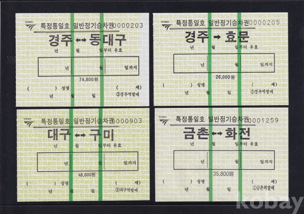 - [기차, 전철, 버스 승차권 모음展] - 특정통일호 일반 정기 승차권 4종 일괄