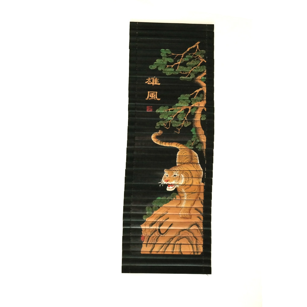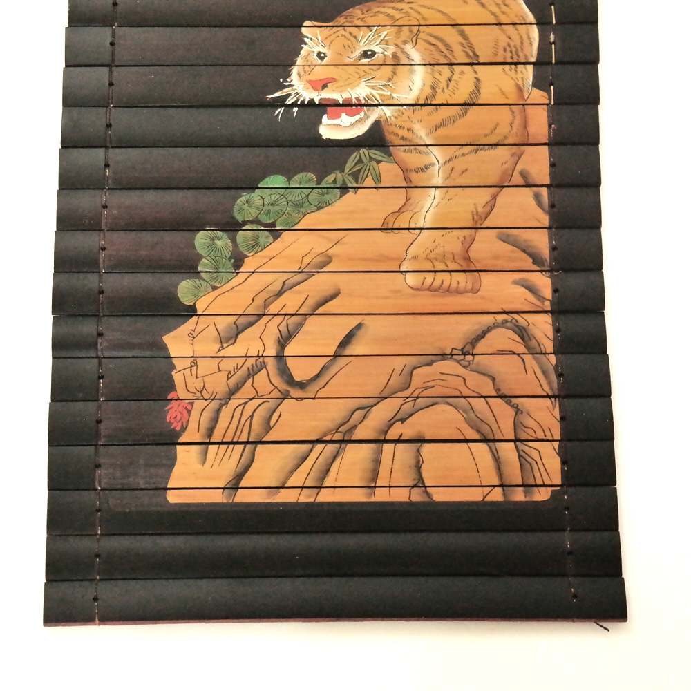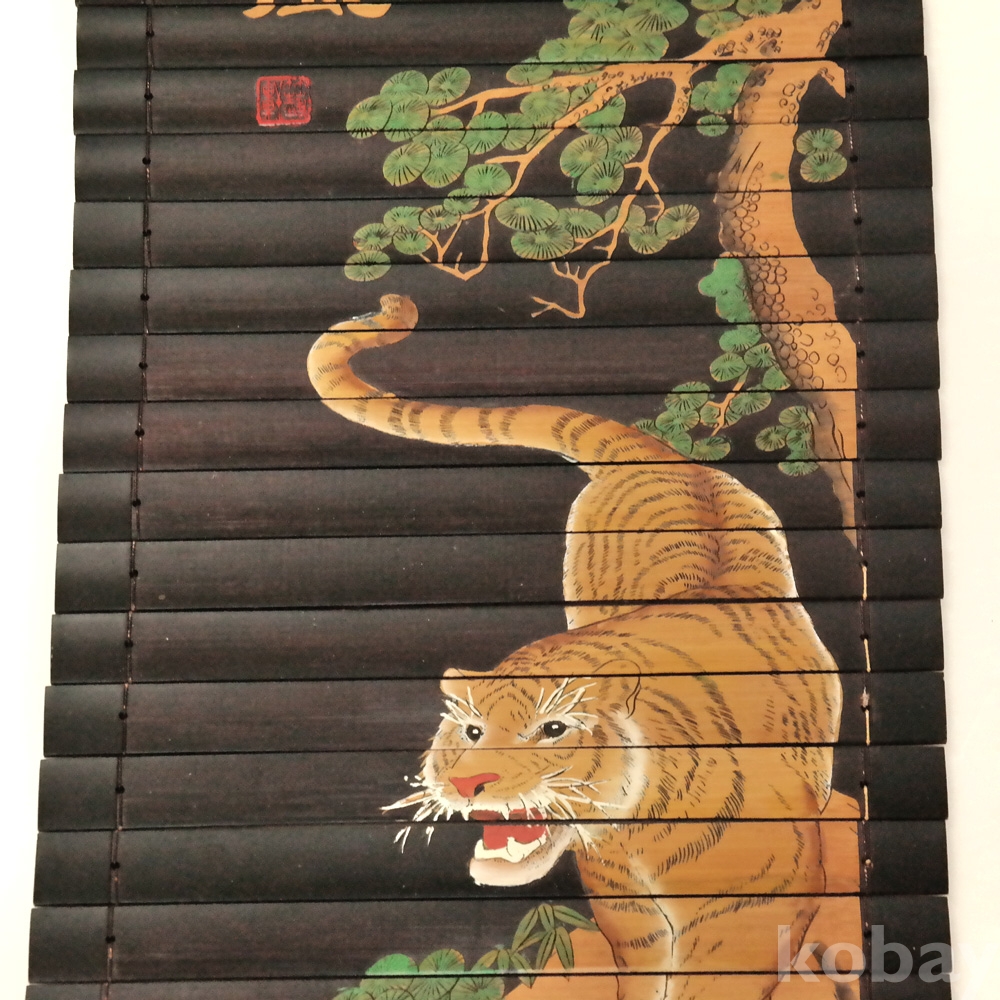 대나무위에 호랑이 그림이 새겨져있는 죽간형태의 족자 입니다.