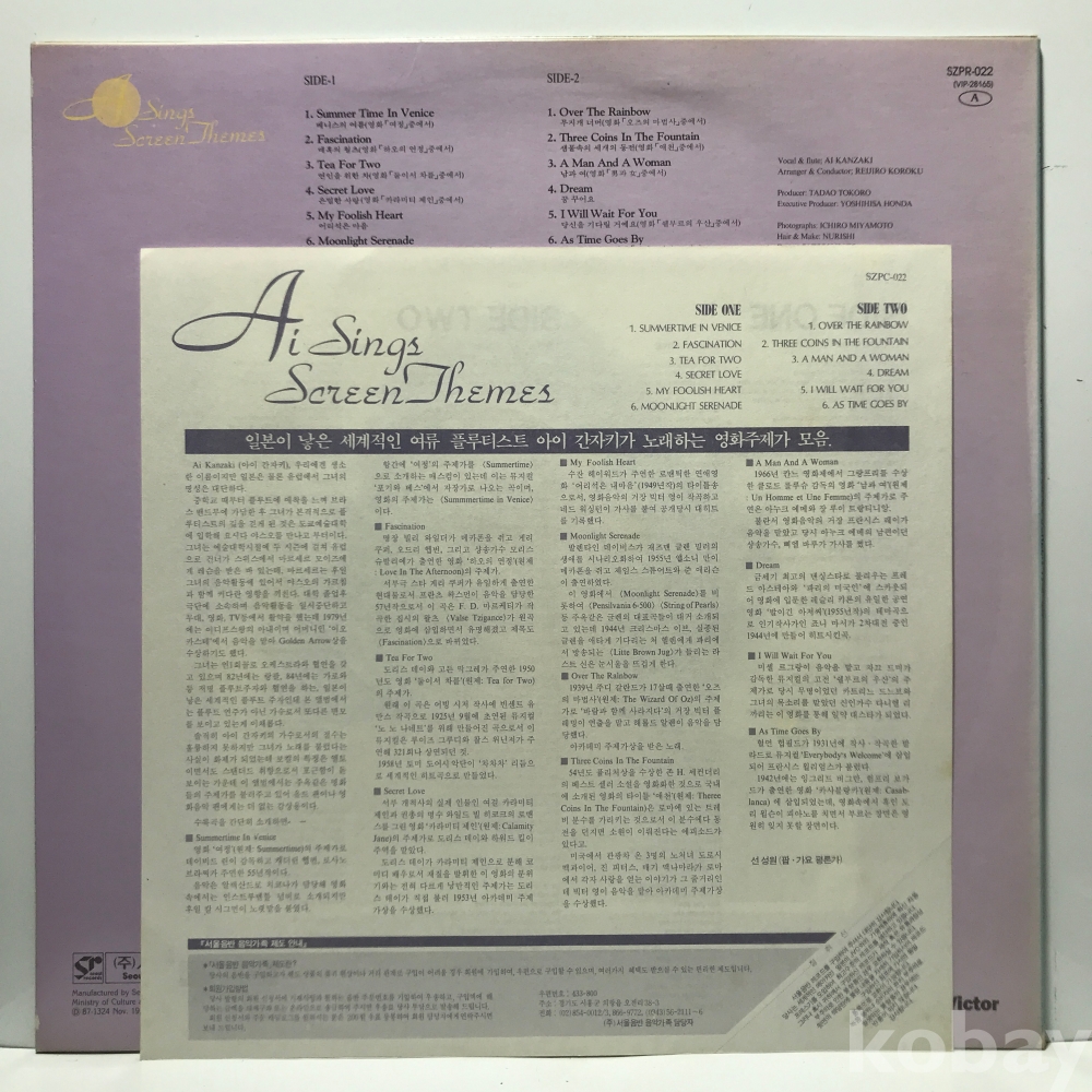 LP 35,350-94 Ai Kanzaki Ai Sings Screen Themes . ` 87 서울 자켓 EX+ 알판 NM
