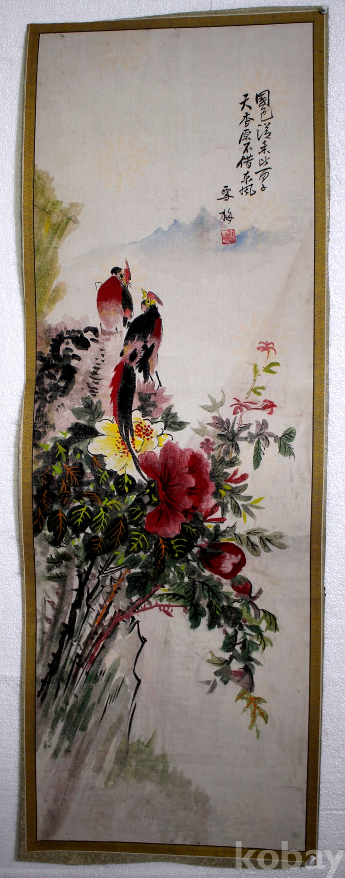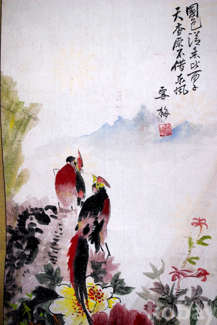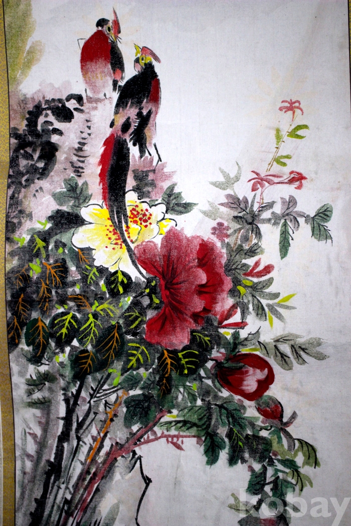 베바닥에 그린 雪梅(설매)의 채생이 화려한 화조도 1점