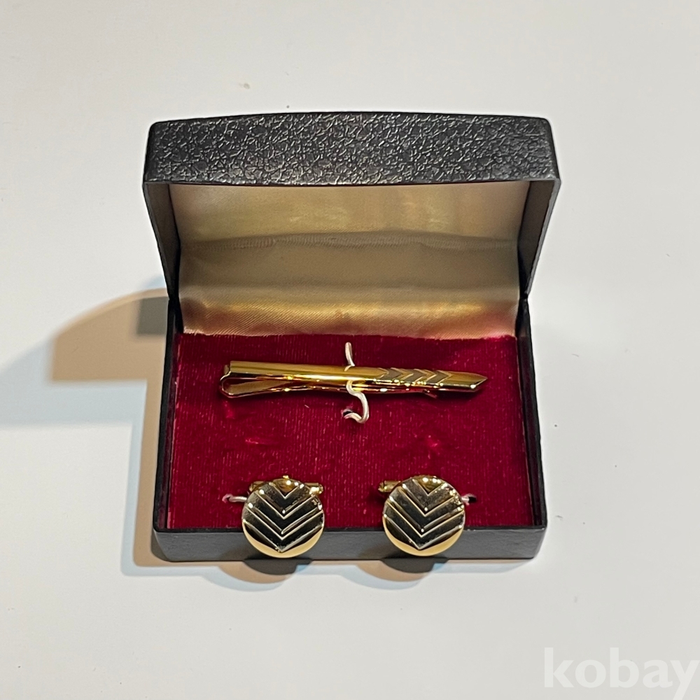 골드무늬 커프스버튼/ 넥타이핀 세트