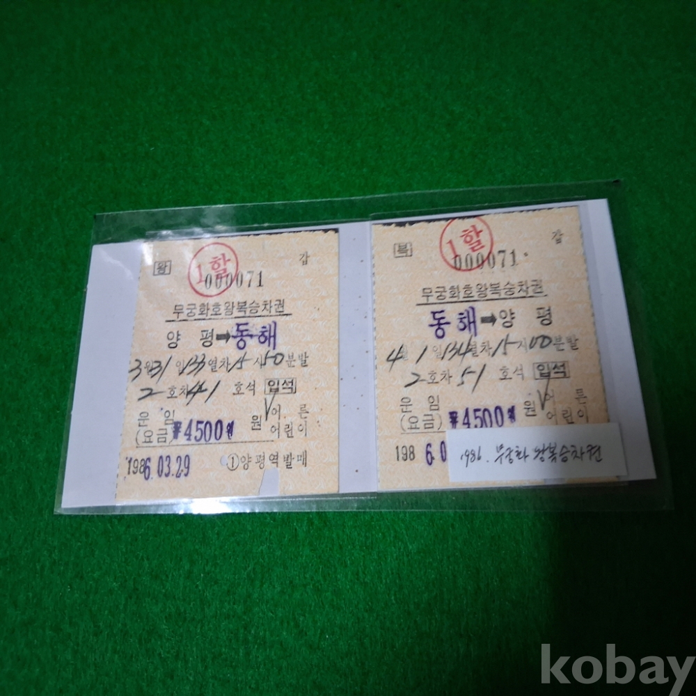한국철도 무궁화왕복승차권 2매
