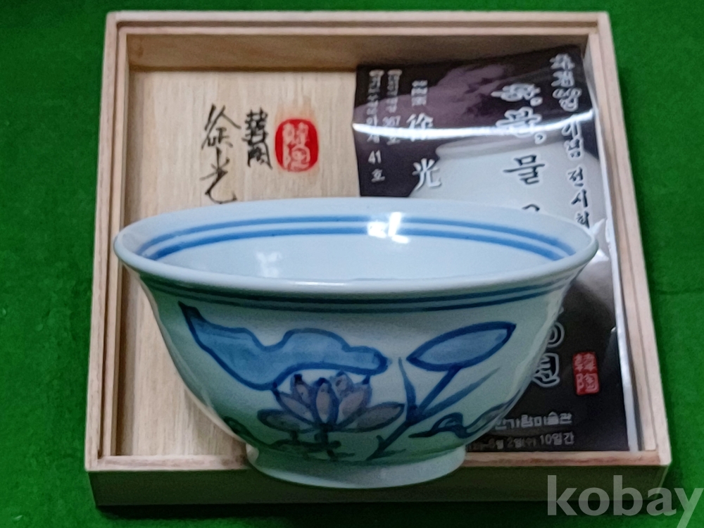무형문화재 한도 서광수 명장 청화백자 진사채 연꽃 오리문 발 입니다