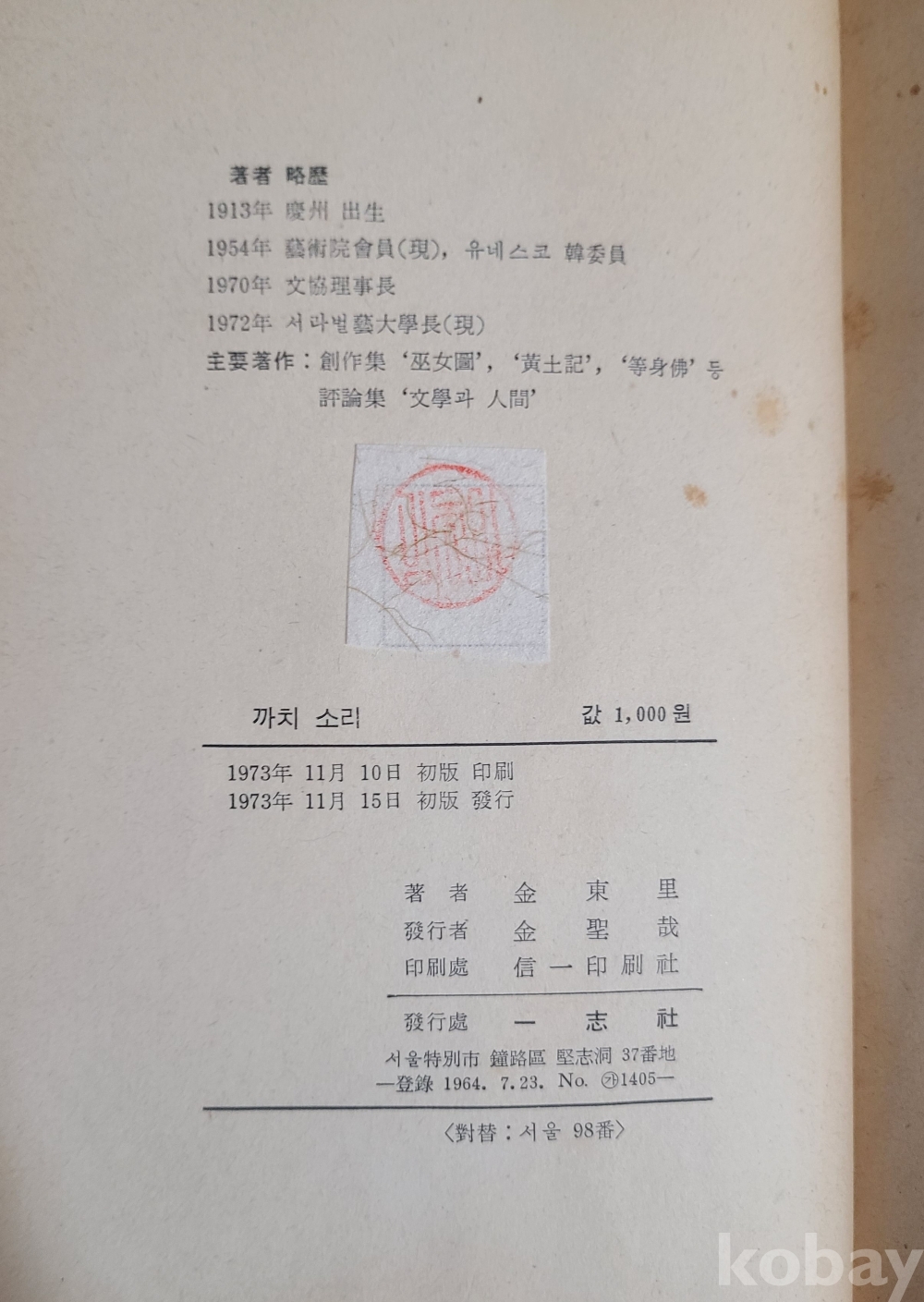 김동리 제6창작집 <까치소리> 희귀 초판본