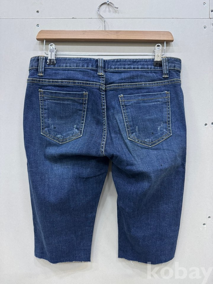 [천원옷장] #86 제이코코 남성 데님 하프 팬츠 컷팅 청반바지 빈티지 워싱 30인치