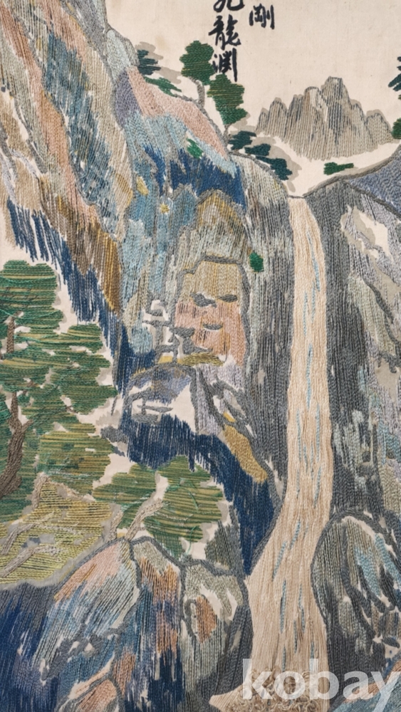 구한말 연대 수예로 완성된 외금강 구룔연입니다,