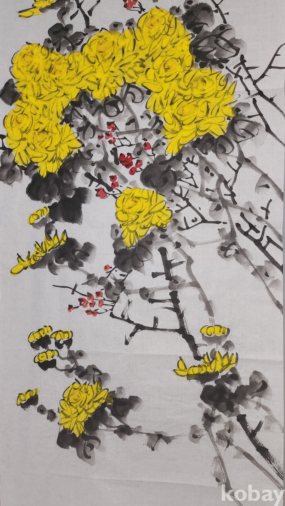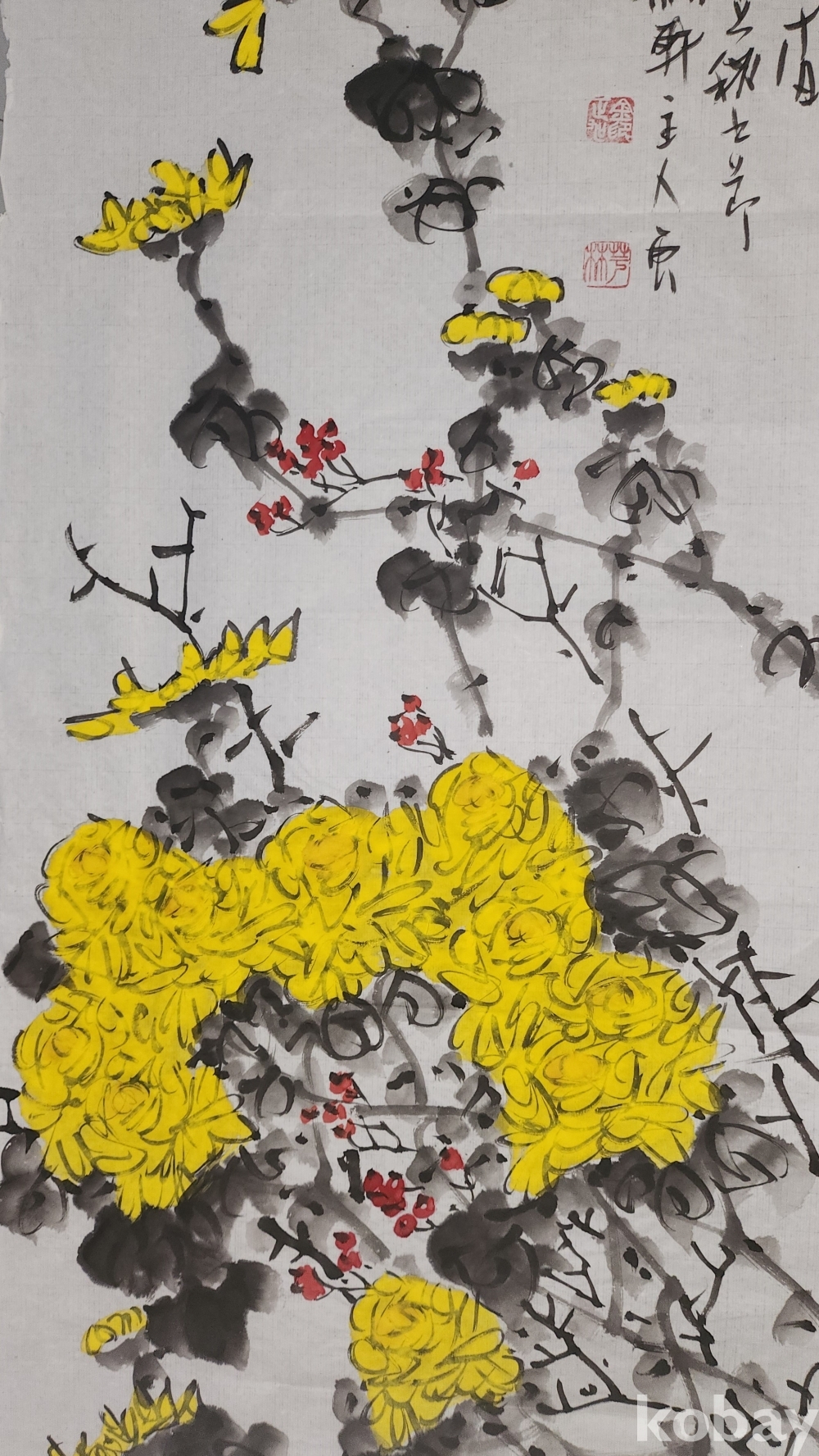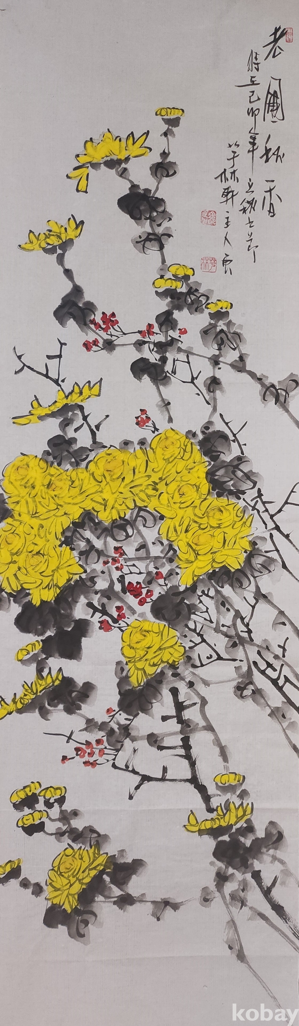 대한민국 미술대전 심사위원 역임하신 우림 김정욱 (芋林 金正旭) 作 화조 1/2 절지입니다,