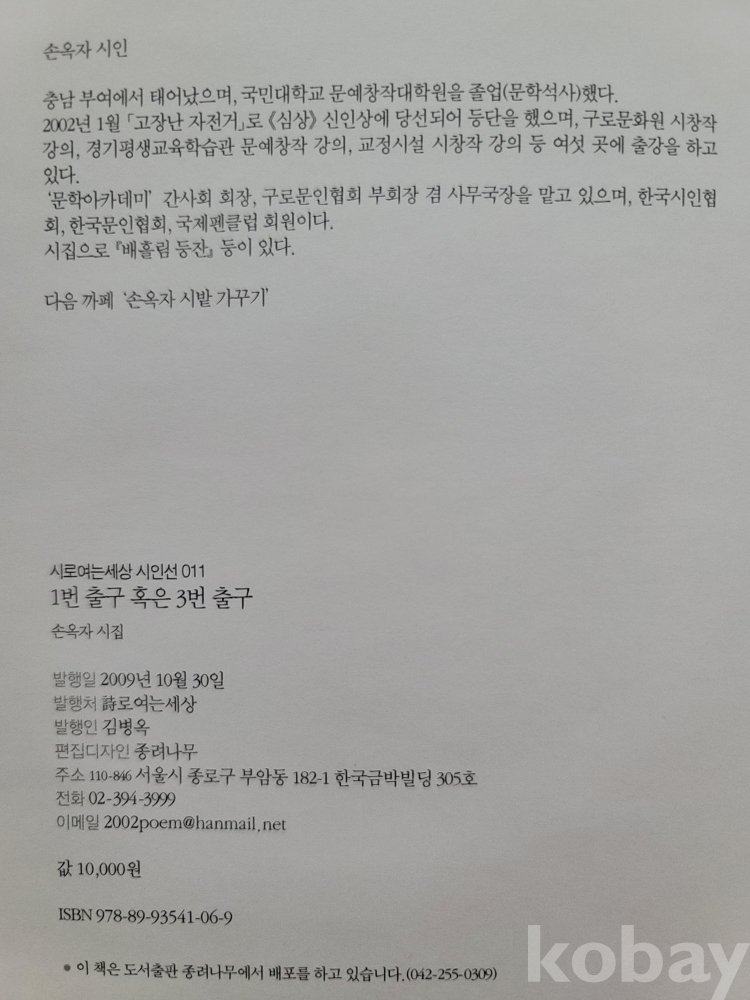 2009년 발간한 제2시집 『1번 출구 혹은 3번 출구』