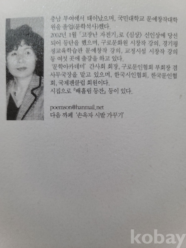 한국문인협회 구로지부 사무국장 등을 역임한 문학치료사 & 시인.