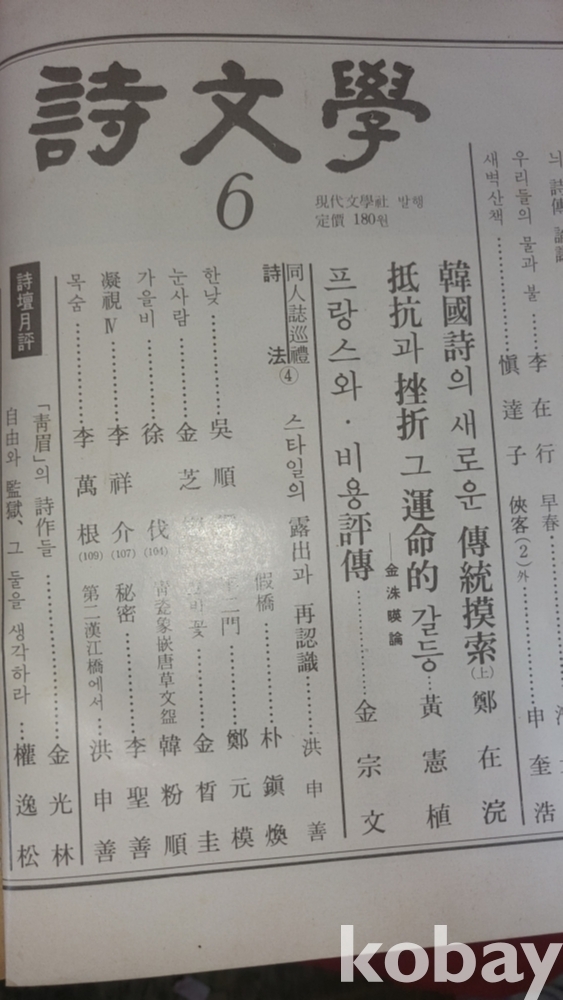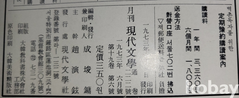 서영화가 박창돈 표지화 그림이 함께하는 "현대문학" 1973년 발행입니다,