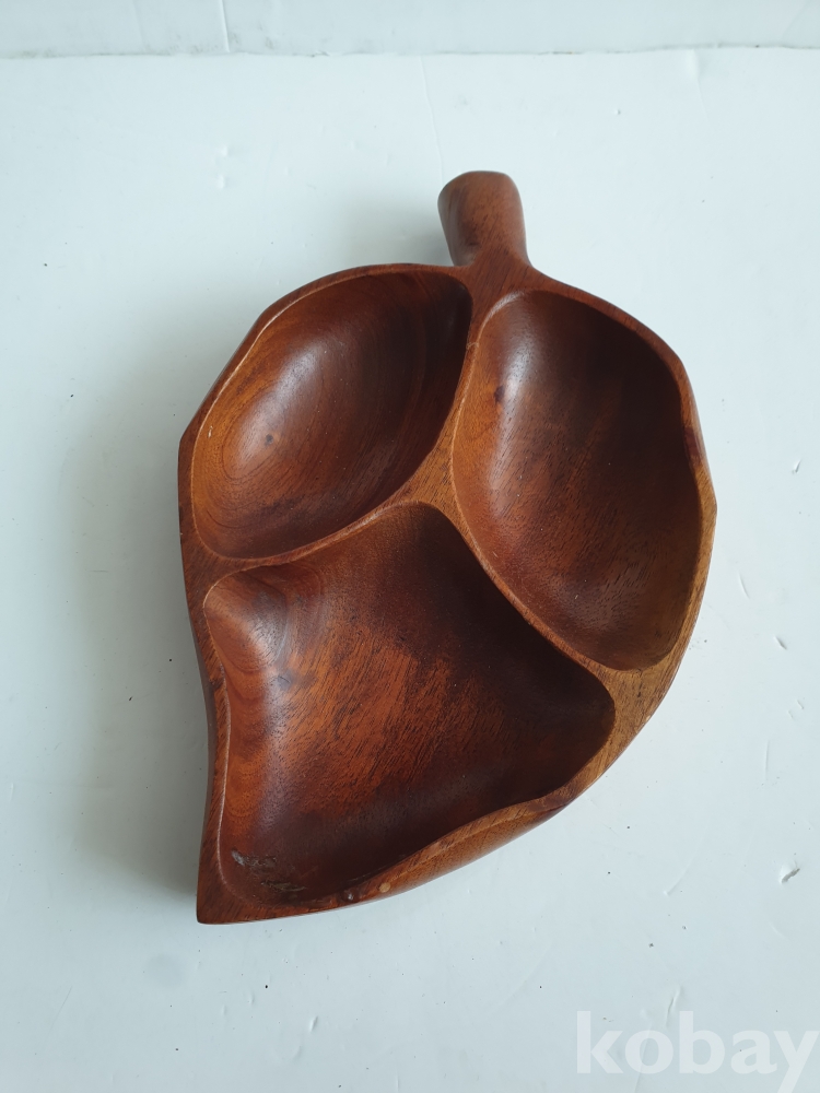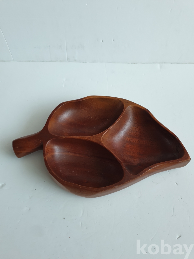 [천원경매] 10-064 목각 3절 나눔 접시(29cm)