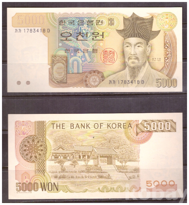 (한국지폐) 율곡 이이 5000원 (가가1783418다) 미사용