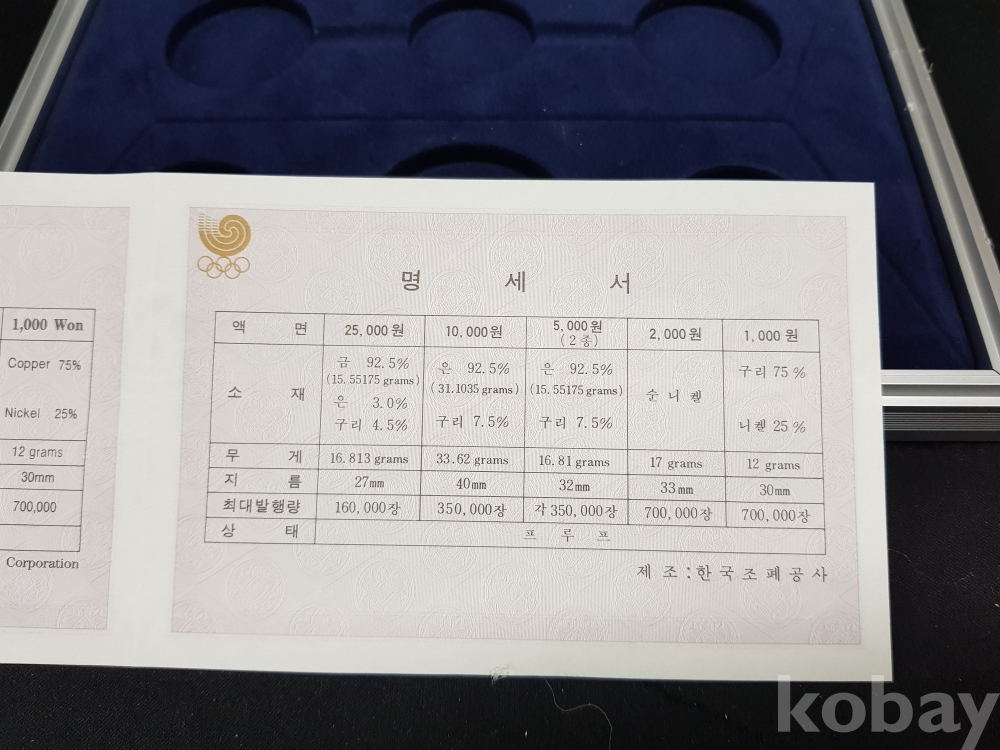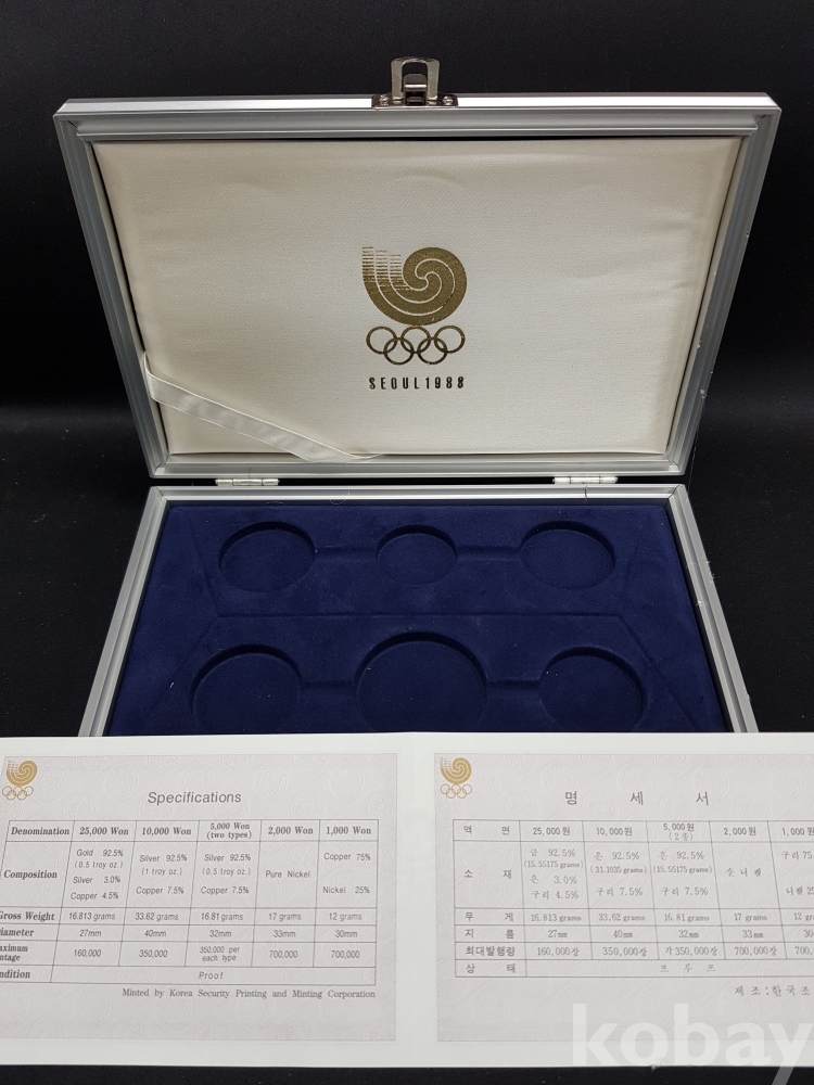 - 제 24회 서울 올림픽대회 기념주화 6종 케이스 (주화 미포함)