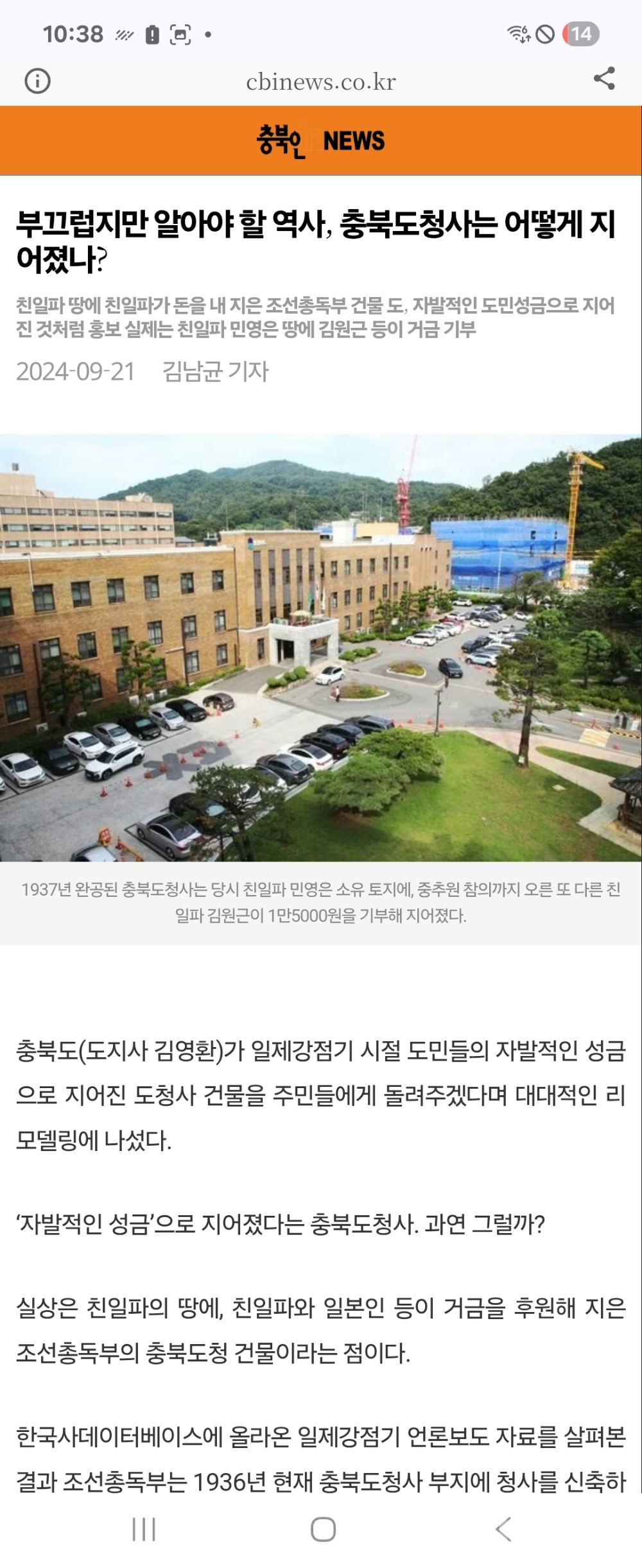 충북청사는 현재까지 남아있는 가장오래된 관공서. 건립과정자체가 당대의 친일역사를 상징적으로보여주어 역사적의미가 있습니다.