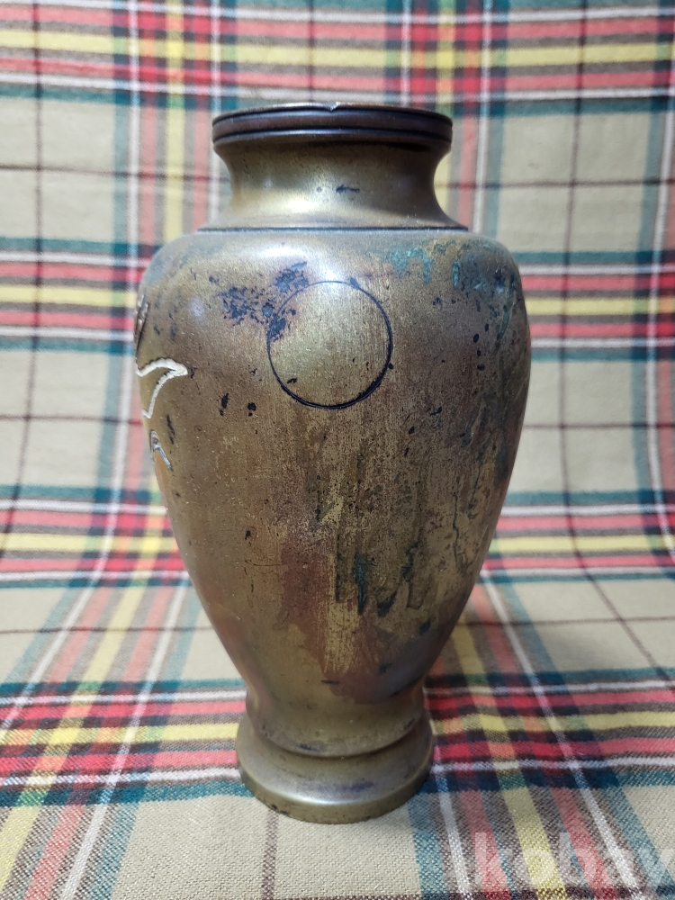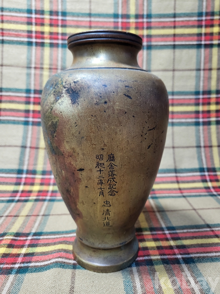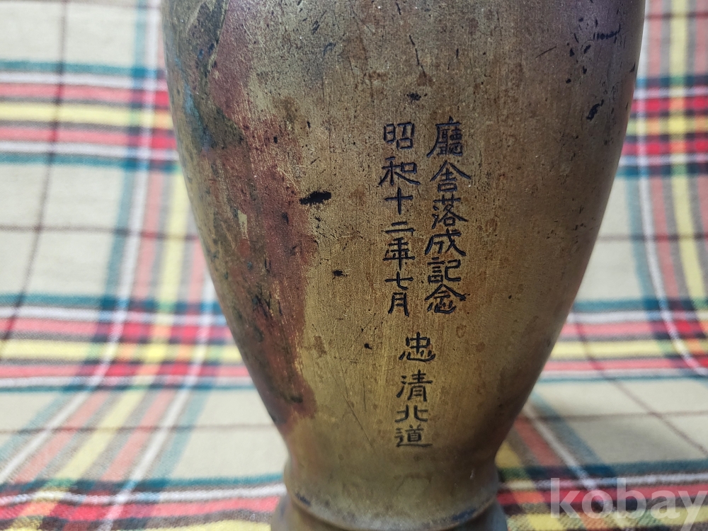 1938년 즉 소화12년, 조선총독부 충북본부건물 즉 충청북도청사의 낙성기념으로 제작된 동제 화병입니다.