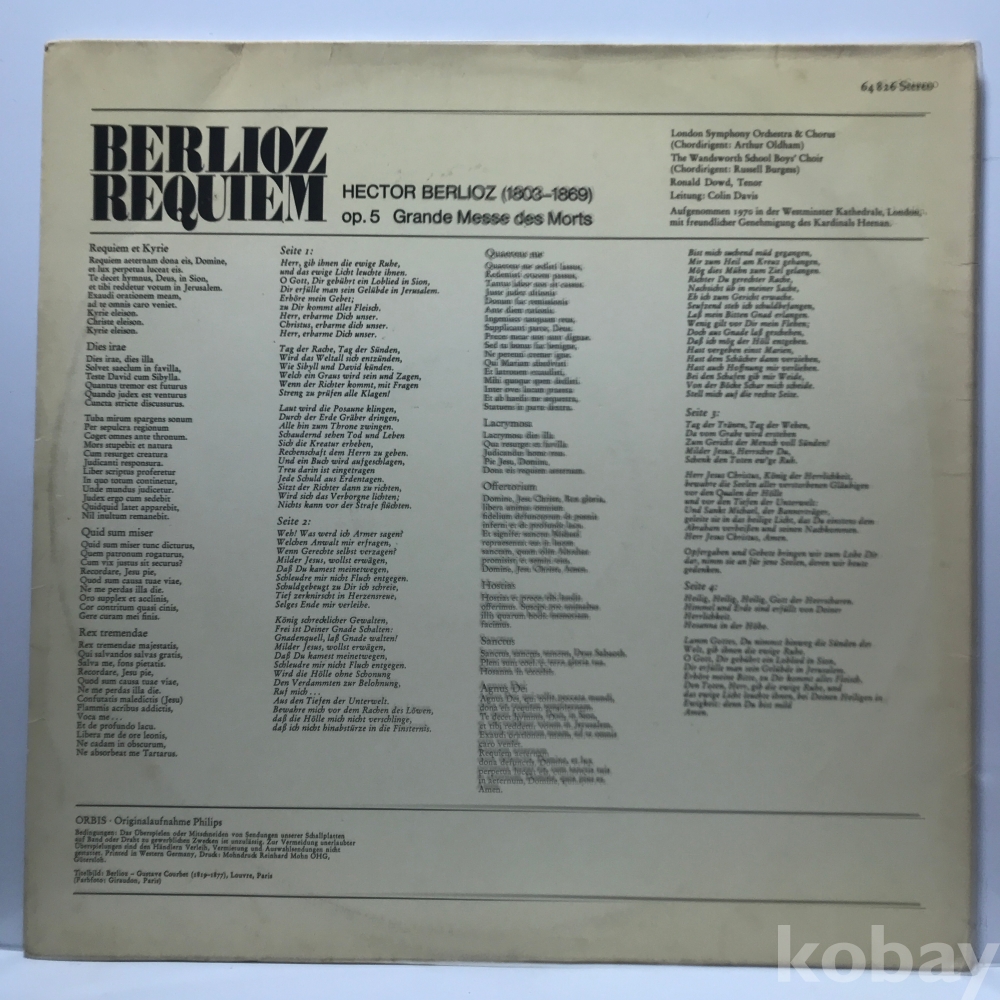LP 35,250-86 Berlioz Requiem - Colin Davis 2LP . ` 수입 자켓 EX 알판 NM