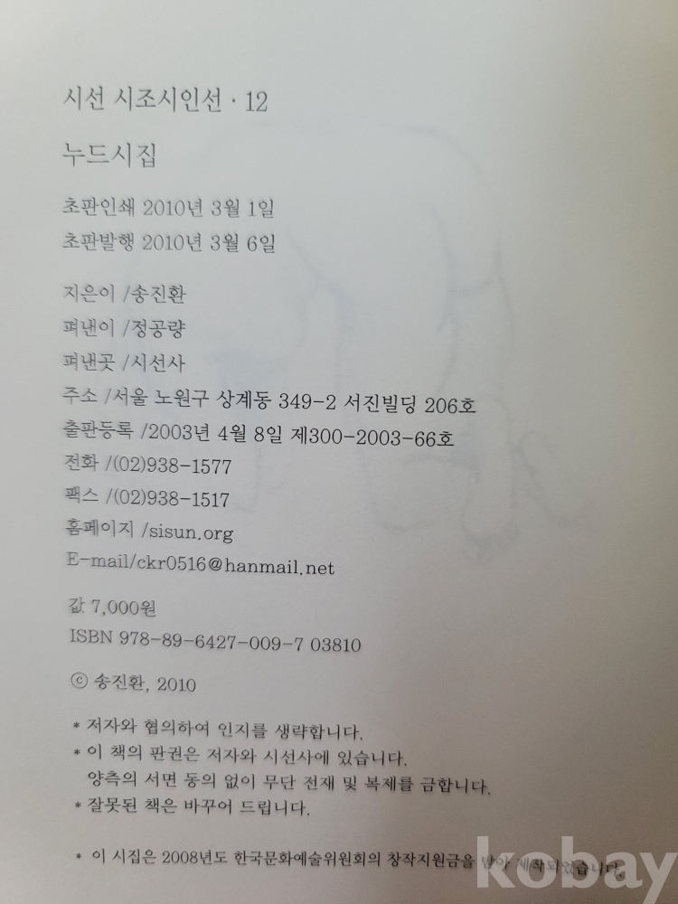 송진환(경상북도 고령: 1948) 저자서명 시조집.