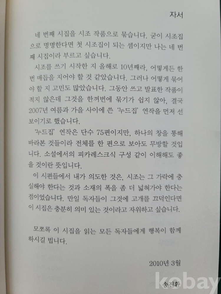 문무학 시인(문학평론가)의 해설. 연작 「누드」 75편.