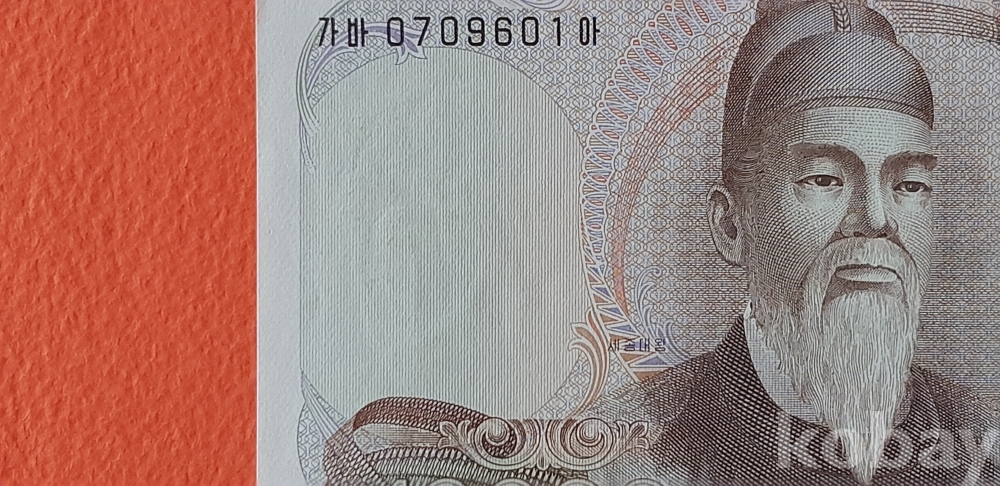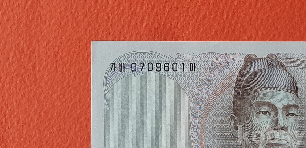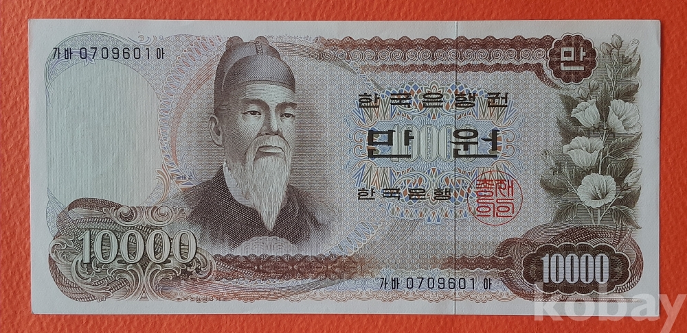1973년 발행 개시한 한국은행 가 10000원권 세종대왕 준미사용급 입니다.