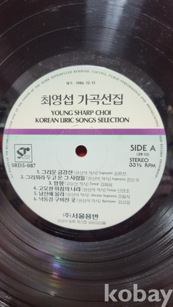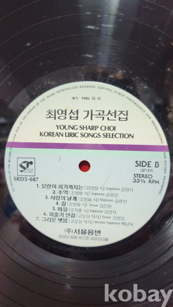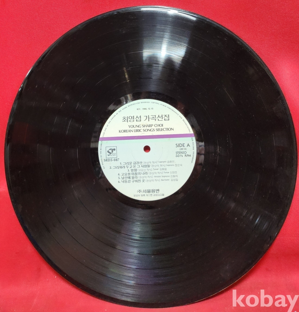 | 자켓상태 | EX : 약간의 마모, 모서리 찢김 존재 | 음반상태 | VG : 생활 기스 다수, 가벼운 노이즈 존재 | 발매정보 | 알수없음 | 가사지여부 | 무 |