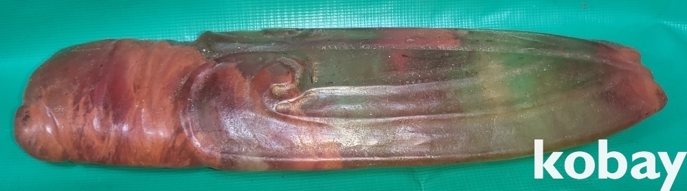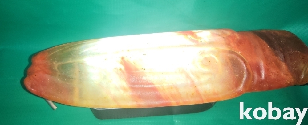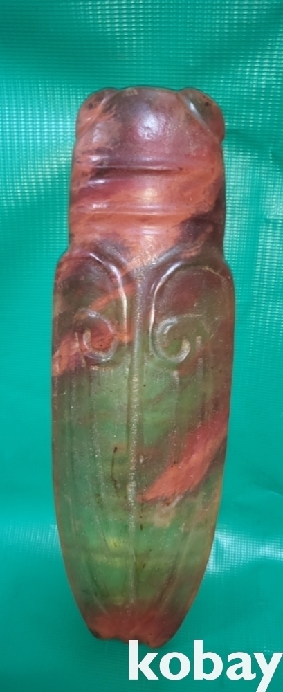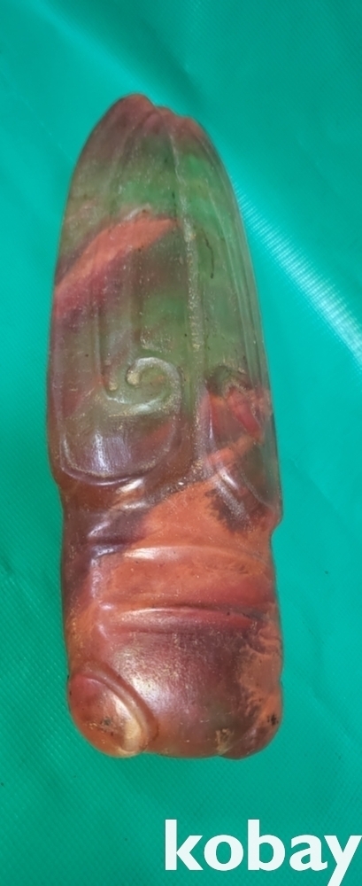 불빛이 투과되는 홍옥으로 만든 매미 조각품입니다,